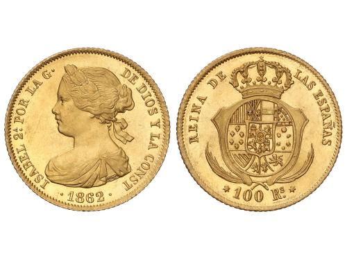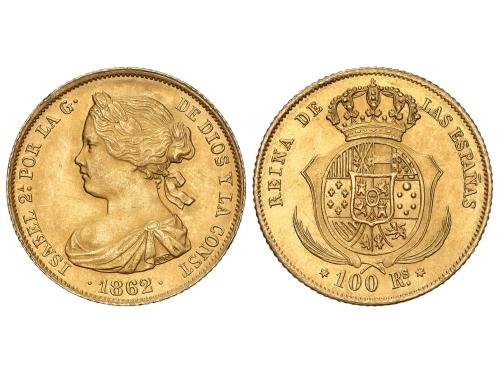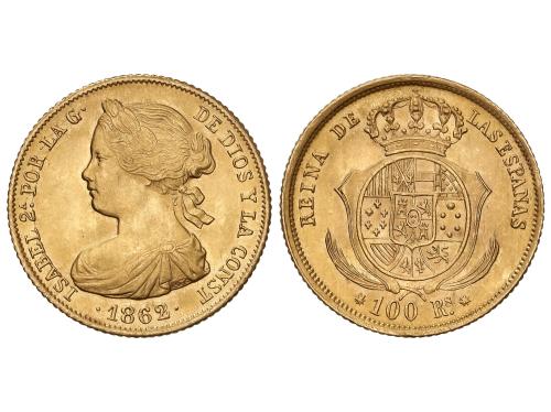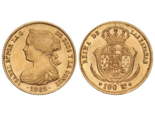 ISABEL II. 100 Reales. 1862. MADRID. 8,39 grs. AC-789. EBC.