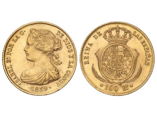ISABEL II. 100 Reales. 1859. BARCELONA. 8,32 grs. AC-770. EBC.