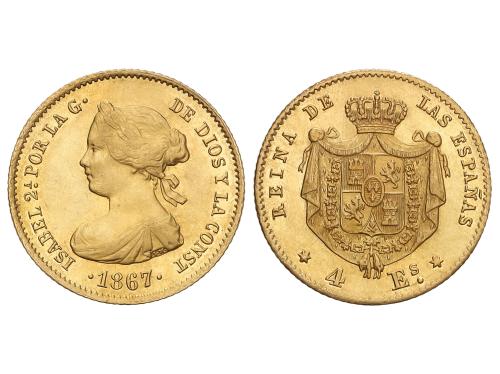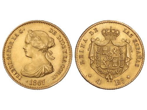 ISABEL II. 4 Escudos. 1867. MADRID. 3,32 grs. AC-691. EBC-.