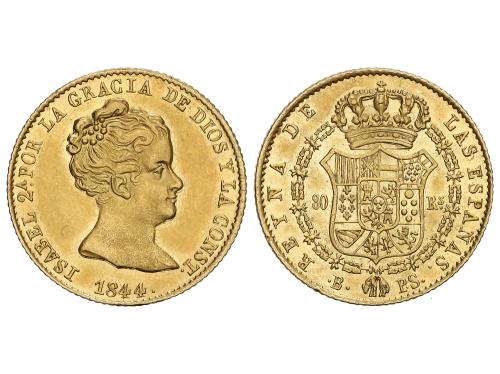 ISABEL II. 80 Reales. 1844. BARCELONA. P.S. 6,75 grs. Brillo original. AC-711. EBC-/EBC.