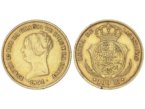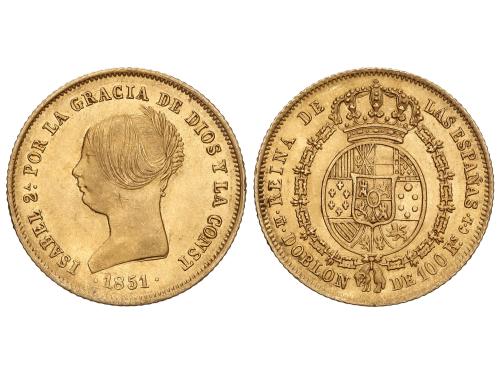 ISABEL II. Doblón de 100 Reales. 1851. MADRID. C.L. 8,14 grs. ESCASA. AC-758. EBC-.