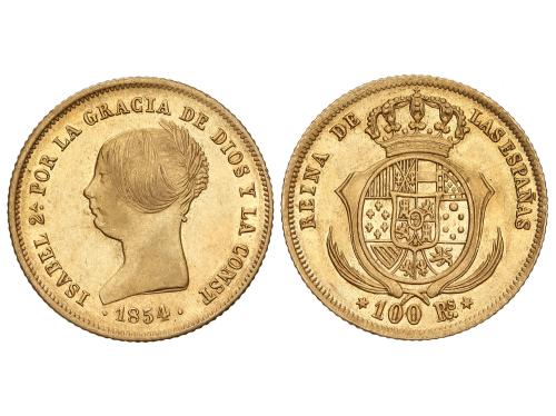 ISABEL II. 100 Reales. 1854. MADRID. 8,33 grs. (Leves rayitas en anverso). Restos de brillo. AC-779. EBC-/EBC.