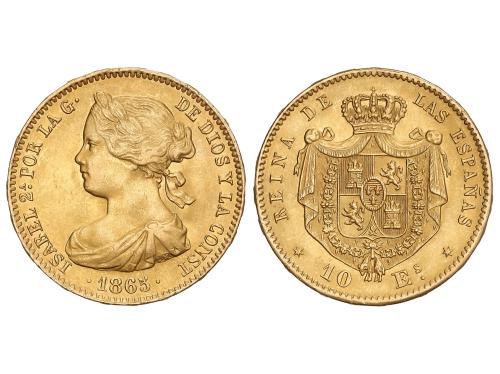 ISABEL II. 100 Reales. 1863. SEVILLA. 8,38 grs. (Leves rayitas en anverso). AC-806. EBC-/EBC.