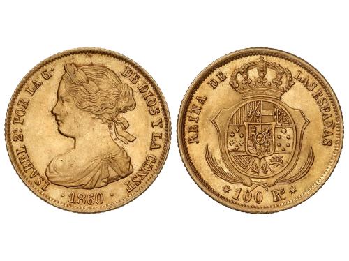 ISABEL II. 100 Reales. 1860. MADRID. 8,32 grs. (Leves rayitas). AC-787. EBC-.