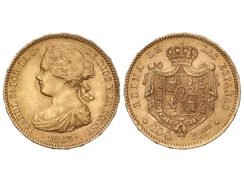 ISABEL II. 100 Reales. 1851/0. SEVILLA. 8,14 grs. Rarísima moneda de Isabel II, la más rara acuñada en Sevilla durante su reinado. Muy pocas piezas conocidas. Se advierte la rectificación de fecha 1851 sobre 1850. Calicó en su catalogo de la moneda española de 2019 le asigna una rareza de RRR, sin asignación de valor, ni nombrar la variante de rectificación. (Pequeña prueba de metal en canto). RARÍSIMA. AC-793; Cy-17358. MBC+.