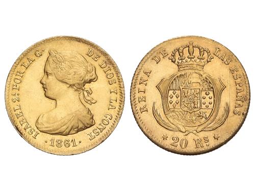 ISABEL II. 20 Reales. 1861. MADRID. 1,59 grs. AU. AC-672. MBC+.