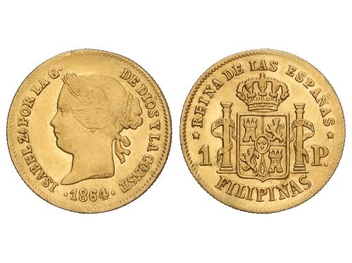ISABEL II. 1 Peso. 1864. MANILA. 1,66 grs. AU. AC-826. MBC+.