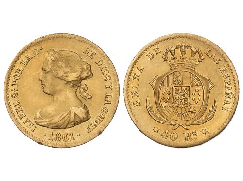 ISABEL II. 40 Reales. 1861. MADRID. 3,35 grs. (Anverso levemente limpiado). AC-679. EBC-.
