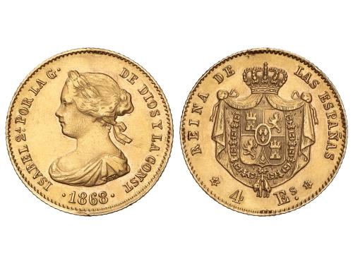 ISABEL II. 4 Escudos. 1868. MADRID. (*6-8). 3,34 grs. AC-692. MBC/MBC+.