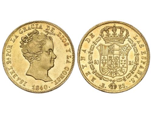 ISABEL II. 80 Reales. 1840. BARCELONA. P.S. 6,73 grs. Restos de brillo original. AC-705. EBC-.