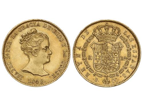 ISABEL II. 80 Reales. 1842. BARCELONA. C.C. 6,72 grs. AC-709. EBC-.