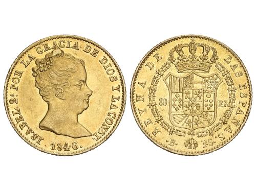 ISABEL II. 80 Reales. 1846. BARCELONA. PS. 6,74 grs. (Leves rayitas). AC-715. EBC-.