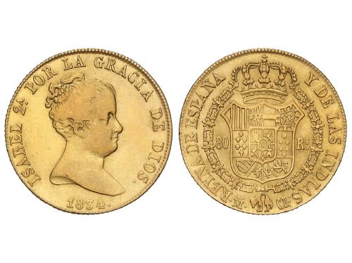 ISABEL II. 80 Reales. 1834. MADRID. C.R. 6,71 grs. (Acuñación algo floja en anverso). ESCASA. AC-719. MBC/MBC+.
