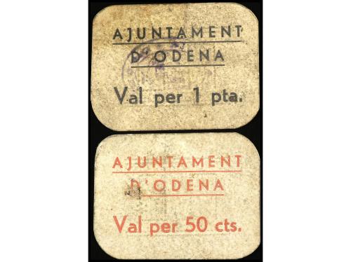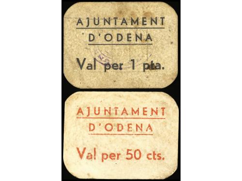 CATALUNYA. Lote 2 billetes 50 Cèntims y 1 Pesseta. Aj. d´ ÒDENA. Cartón. AT-1669, 1670. MBC+.