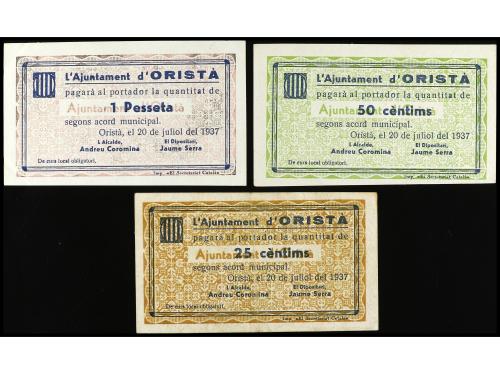 CATALUNYA. Lote 3 billetes 25, 50 Cèntims y 1 Pesseta. 20 Juliol 1937. Aj. d´ ORISTÀ. AT-1719, 1720, 1721. MBC+ a EBC.