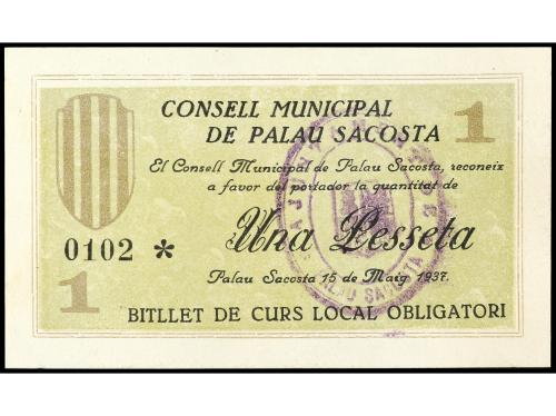 CATALUNYA. 1 Pesseta. 15 Maig 1937. C.M. de PALAU SACOSTA. AT-1760. SC-.
