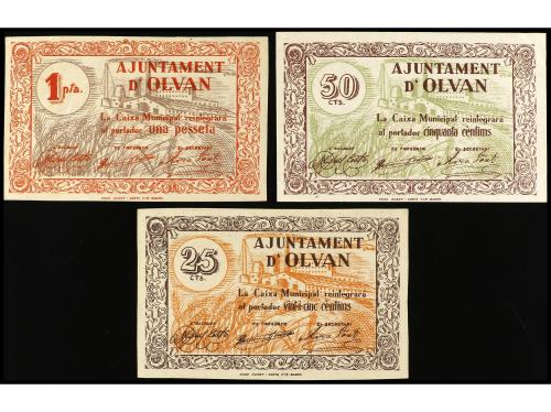 CATALUNYA. Lote 3 billetes 25, 50 Cèntims y 1 Pesseta. Aj. d´ OLVAN. AT-1704b, 1705b, 1706b. EBC-.