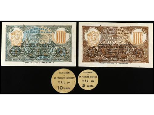 CATALUNYA. Lote 4 billetes 5, 10, 50 Cèntims y 1 Pesseta. Aj. de LA PALMA DE CERVELLÓ. AT-1771/74. MBC+ a EBC.