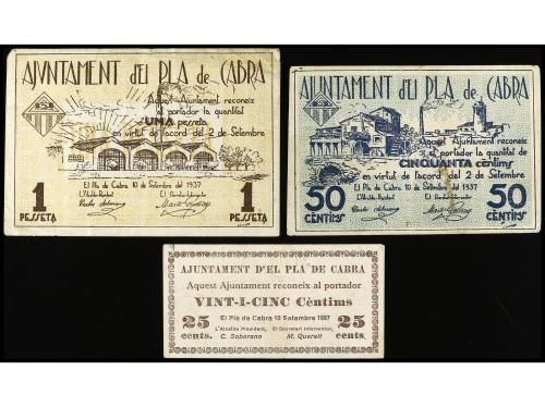 CATALUNYA. Lote 3 billetes 25, y 50 Cèntims y 1 Pesseta. Setembre 1937. Aj. d´EL PLA DE CABRA. AT-1847, 1848, 1849. MBC a MBC+.