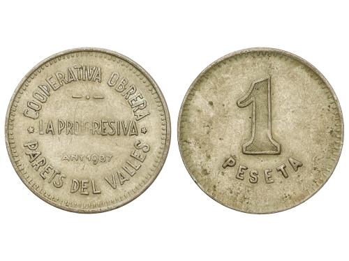 CATALUNYA. 1 Peseta. 1937. PARETS DEL VALLÈS. COOPERATIVA OBRERA LA PROGRESIVA. Ni. T-2058. EBC.