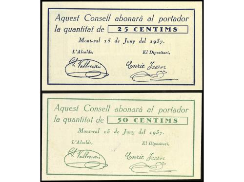 CATALUNYA. Lote 2 billetes 25 y 50 Cèntims. 15 Juny 1937. C.M de MONT-RAL. AT-1594b/95b. EBC.