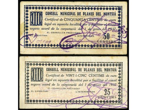 CATALUNYA. Lote 2 billetes 25 y 50 Cèntims. 1 Gener 1937. C.M. de PLANES DE MONTSIÀ. (Algo sucios). MBC+.