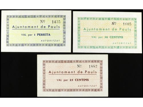 CATALUNYA. Lote 3 billetes 25, 50 Cèntims y 1 Pesseta. Aj. de PAÜLS. . AT-1793/1795. EBC- a EBC.