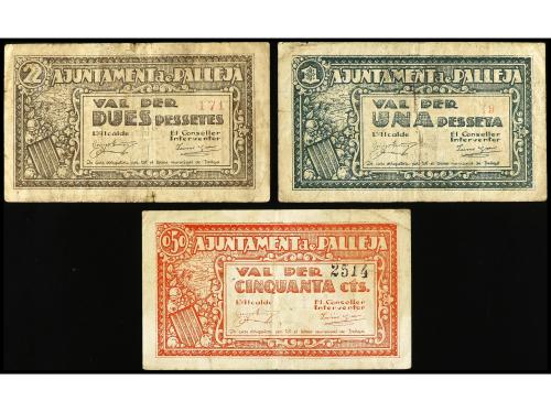 CATALUNYA. Lote 3 billetes 50 Cèntims 1 y 2 Pessetes. Aj. de PALLEJÀ. AT-1768/70. MBC- a MBC.