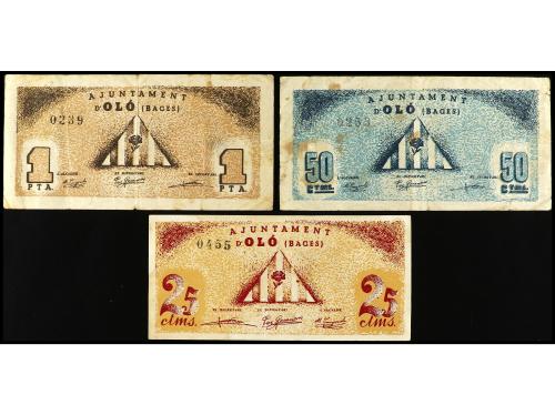 CATALUNYA. Lote 3 billetes 25, 50 Cèntims y 1 Pesseta. Aj. d´ OLÓ. AT-1691/1693. BC+ a MBC.