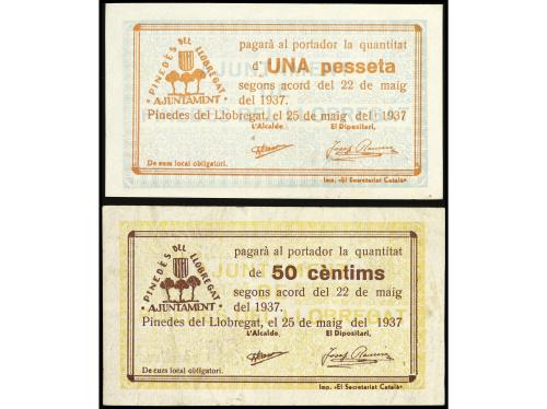 CATALUNYA. Lote 2 billetes 50 Cèntims y 1 Pesseta. 25 Maig 1937. Aj. de PINEDES DEL LLOBREGAT. AT-1829d, 1830a. MBC+ a EBC-.