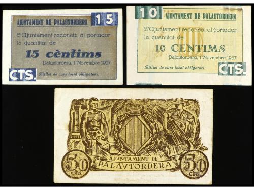 CATALUNYA. Lote 3 billetes 10, 15 y 50 Cèntims. Aj. de PALAUTORDERA. AT-1765/ 67. MBC a MBC+.