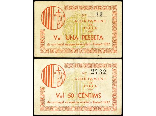 CATALUNYA. Lote 2 billetes 50 Cèntims y 1 Pesseta. 1937. Aj. de PIERA. AT-1819, 1820. MBC.