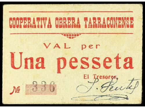 CATALUNYA. 1 Pesseta. COOPERATIVA OBRERA TARRACONENSE. Cartón. ESCASO. L-2523; RGH-10089. EBC-.