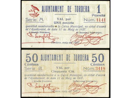 CATALUNYA. Lote 2 billetes 50 Cèntims y 1 Pesseta. 11 Maig 1937. Aj. de TORDERA. AT-2510, 2511. MBC a MBC+.