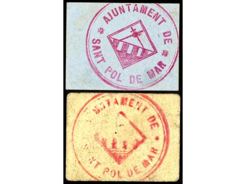CATALUNYA. Lote 2 billetes 50 Cèntims y 1 Pesseta. Aj. de SANT POL DE MAR. Cartón. ESCASOS. AT-2281, 2282. MBC+ a EBC.