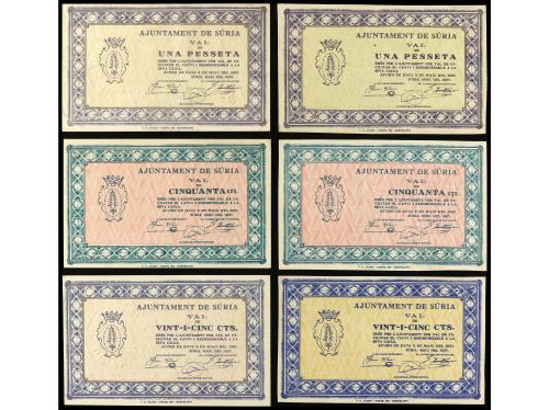 CATALUNYA. Lote 6 billetes 25 (2), 50 Cèntims (2) y 1 Pesseta (2). 3 Maig 1937. Aj. de SÚRIA. AT-2416, 2416b, 2417, 2417c, 2418b. MBC+ a EBC-.
