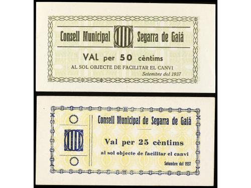 CATALUNYA. Lote 2 billetes 25 y 50 Cèntims. Setembre 1937. C.M. de SEGARRA DE GAIÀ. AT-2309/10. EBC+.