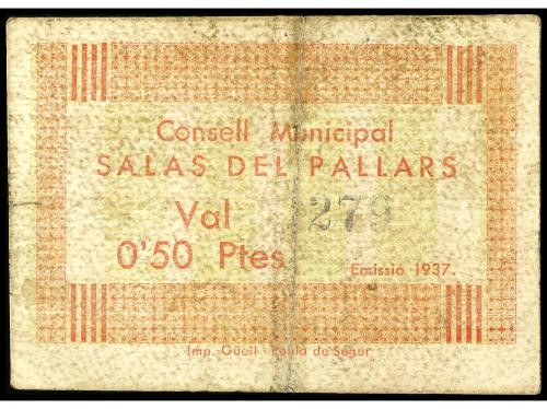 CATALUNYA. 0,50 Pessetes. 1937. C.M. de SALAS DEL PALLARS. (Sucio y restos de adhesivo). MUY ESCASO. AT-2252. MBC-.