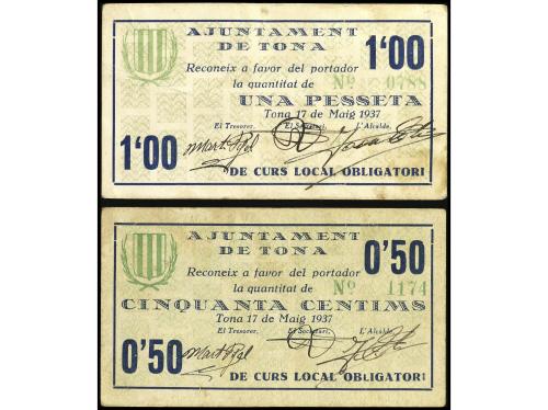 CATALUNYA. Lote 2 billetes 50 Cèntims y 1 Pesseta. 17 Maig 1937. Aj. de TONA. AT-2499/2500. MBC+.