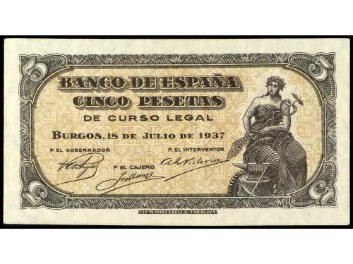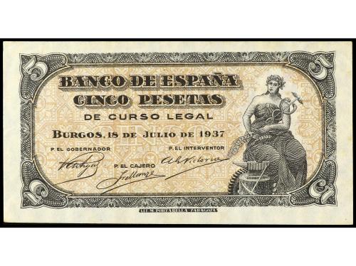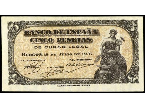 ESTADO ESPAÑOL. 5 Pesetas. 18 Julio 1937. Portabella. Serie A. Ed-424a. EBC-.