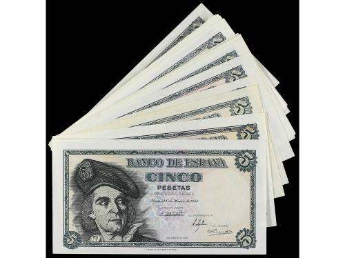 ESTADO ESPAÑOL. Lote 14 billetes 5 Pesetas. 15 Marzo 1948. Elcano. Sin Serie, Series A, B, C, D, E, F, G, H, I, J, K, L, M. A EXAMINAR. Ed-455, 455a. EBC a SC.