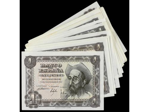 ESTADO ESPAÑOL. Lote 19 billetes 1 Peseta. 19 Noviembre 1951. Don Quijote. Sin Serie y Series desde la A a la S. A EXAMINAR. Ed-461, 461a. EBC a SC-.