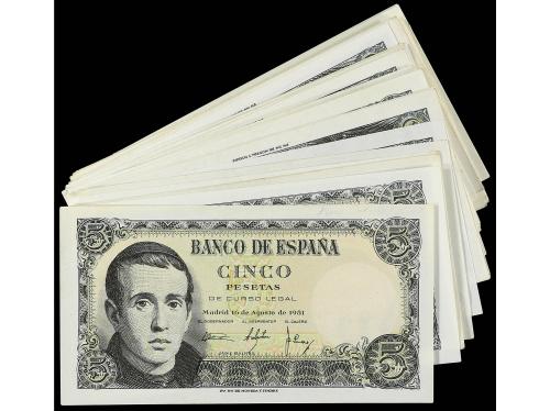ESTADO ESPAÑOL. Lote 38 billetes 5 Pesetas. 16 Agosto 1951. Balmes. Sin Serie y Serie: A, B, C, D, E, F, G, H, I, J, K, L, M, N, P, Q, R, S, T, U, V, W, X, Y, Z, 1A, 1B, 1C, 1D, 1E, 1F, 1G, 1H, 1I, 1J, 1K, 1L. A EXAMINAR. Ed-459, 459a, 459b. EBC- a SC-.