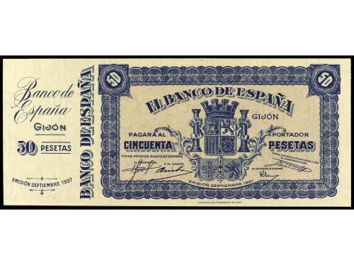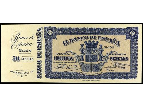 GUERRA CIVIL, ZONA REPUBLICANA. 50 Pesetas. Septiembre 1937. EL BANCO DE ESPAÑA. GIJÓN. Sin numeración y con matriz. RARO. Ed-NE33. SC.