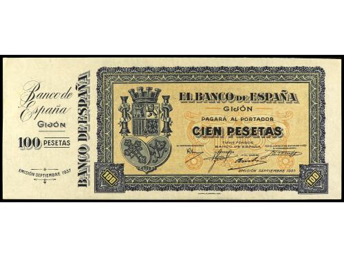 GUERRA CIVIL, ZONA REPUBLICANA. 100 Pesetas. Septiembre 1937. EL BANCO DE ESPAÑA. GIJÓN. Con matriz y sin numeración. Ed-399a. SC-.