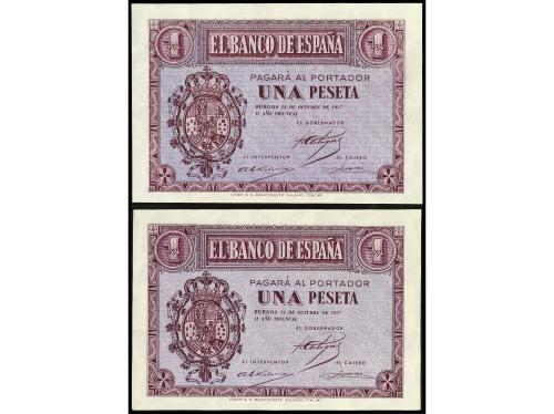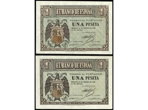 ESTADO ESPAÑOL. Lote 2 billetes 1 Peseta. 12 Octubre 1937. Serie B y C. 425a. SC-.