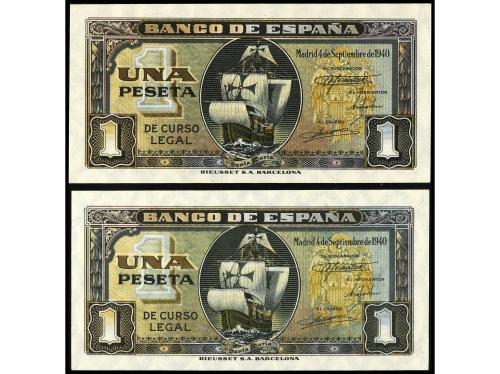 ESTADO ESPAÑOL. Lote 2 billetes 1 Peseta. 4 Septiembre 1940. Carabela. Serie A y C. Ed-442a, 442b. SC-.