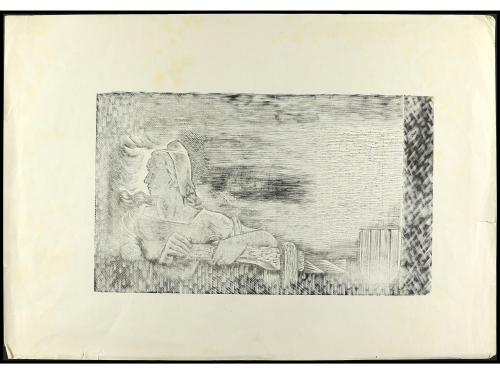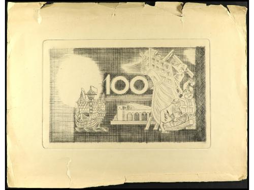 GUERRA CIVIL, ZONA REPUBLICANA. Prueba de Imprenta. (1936-1937). GENERALITAT DE CATALUNYA. Prueba de anverso de los billetes de 1.000 Pesetas para 1950 sin texto. (Roturas en margenes del papel). SC-.