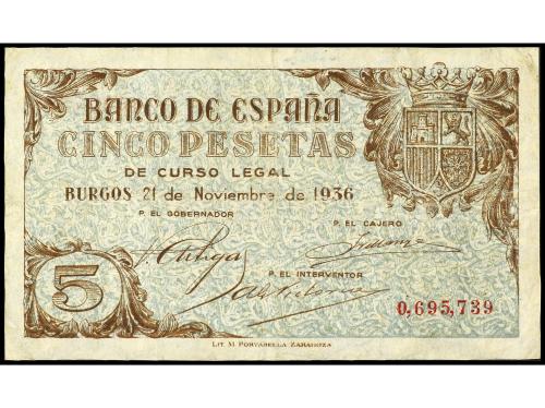 ESTADO ESPAÑOL. 5 Pesetas. 21 Noviembre 1936. (Leves roturas). Ed-417. MBC-.