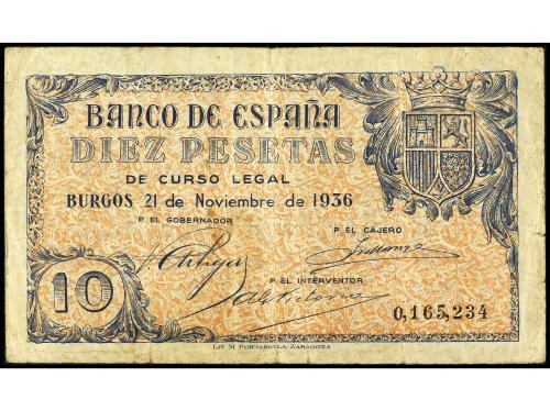 ESTADO ESPAÑOL. 10 Pesetas. 21 noviembre 1936. (Algunas reparaciones). Ed-418. MBC.